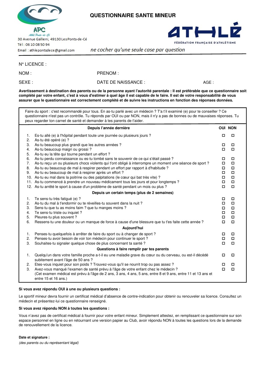 Télécharger l'image jpgQuestionnaire de santé à joindre au bulletin d'adhésion pour les mineurs uniquement.